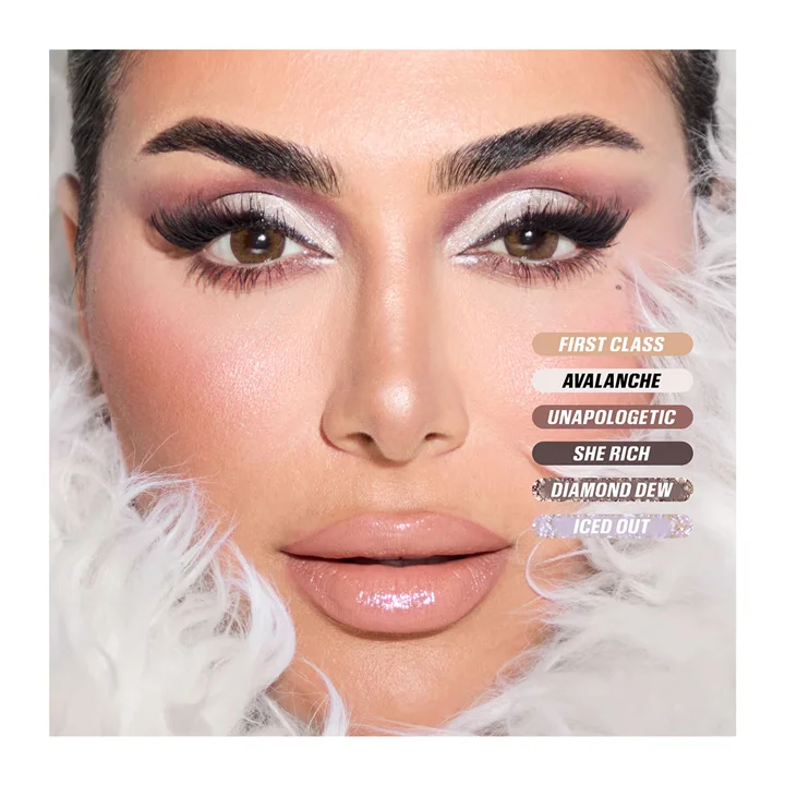 Get creative with your eye makeup with the Huda Beauty Icy Nude Eyeshadow Palette (16.1 g). This artistic eyeshadow palette contains 18 pans of mattes, glitters, shimmers, and foils for beautiful eye looks. The Huda Beauty eyeshadow palette has an intensely pigmented formula for one-swipe application on the eyelids. Also, this buttery eyeshadow palette has a creamy texture that goes on the lids smoothly with minimal falloff.