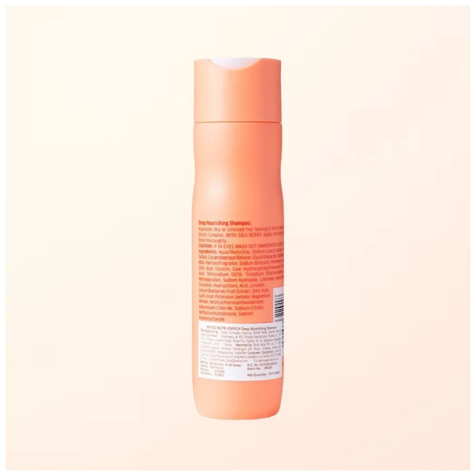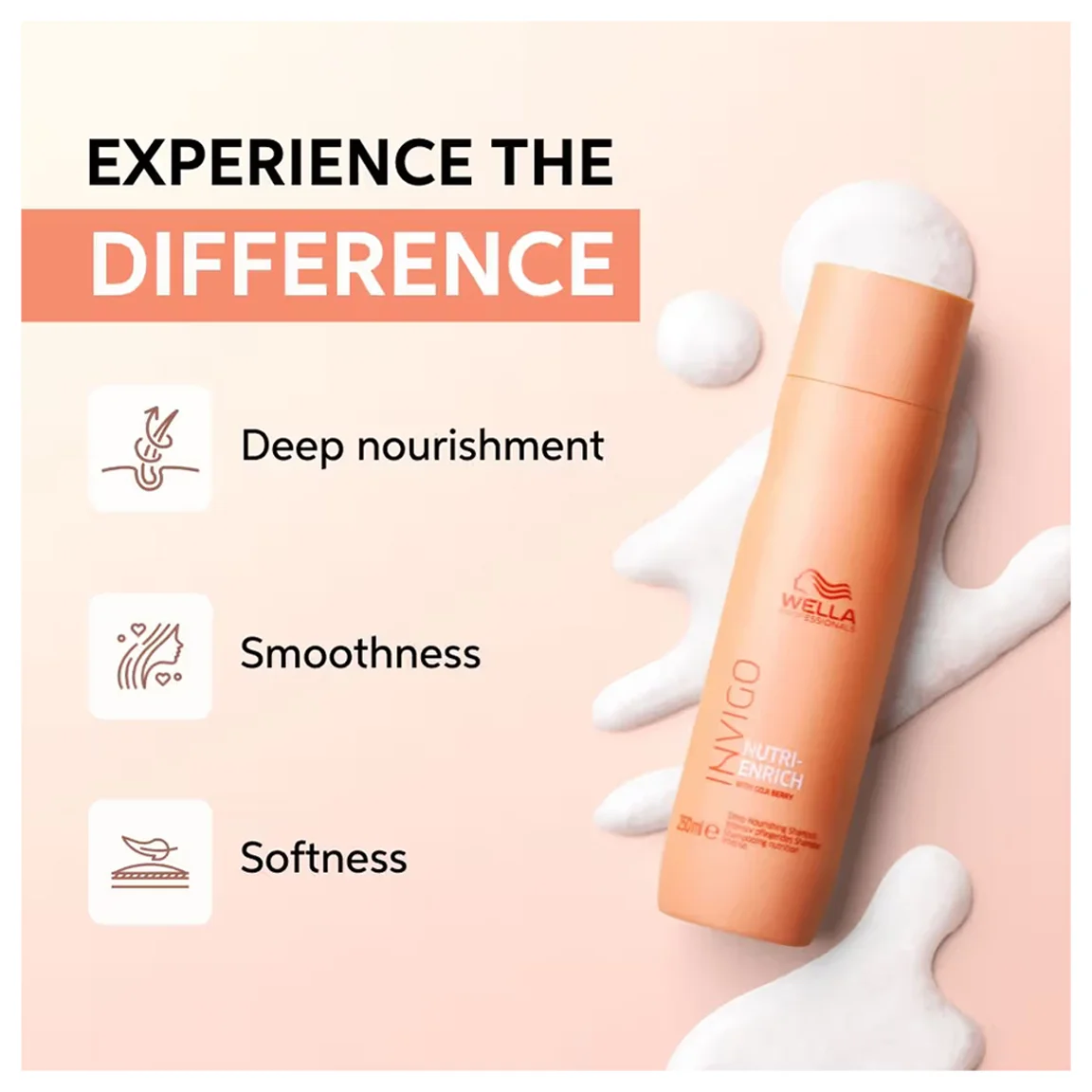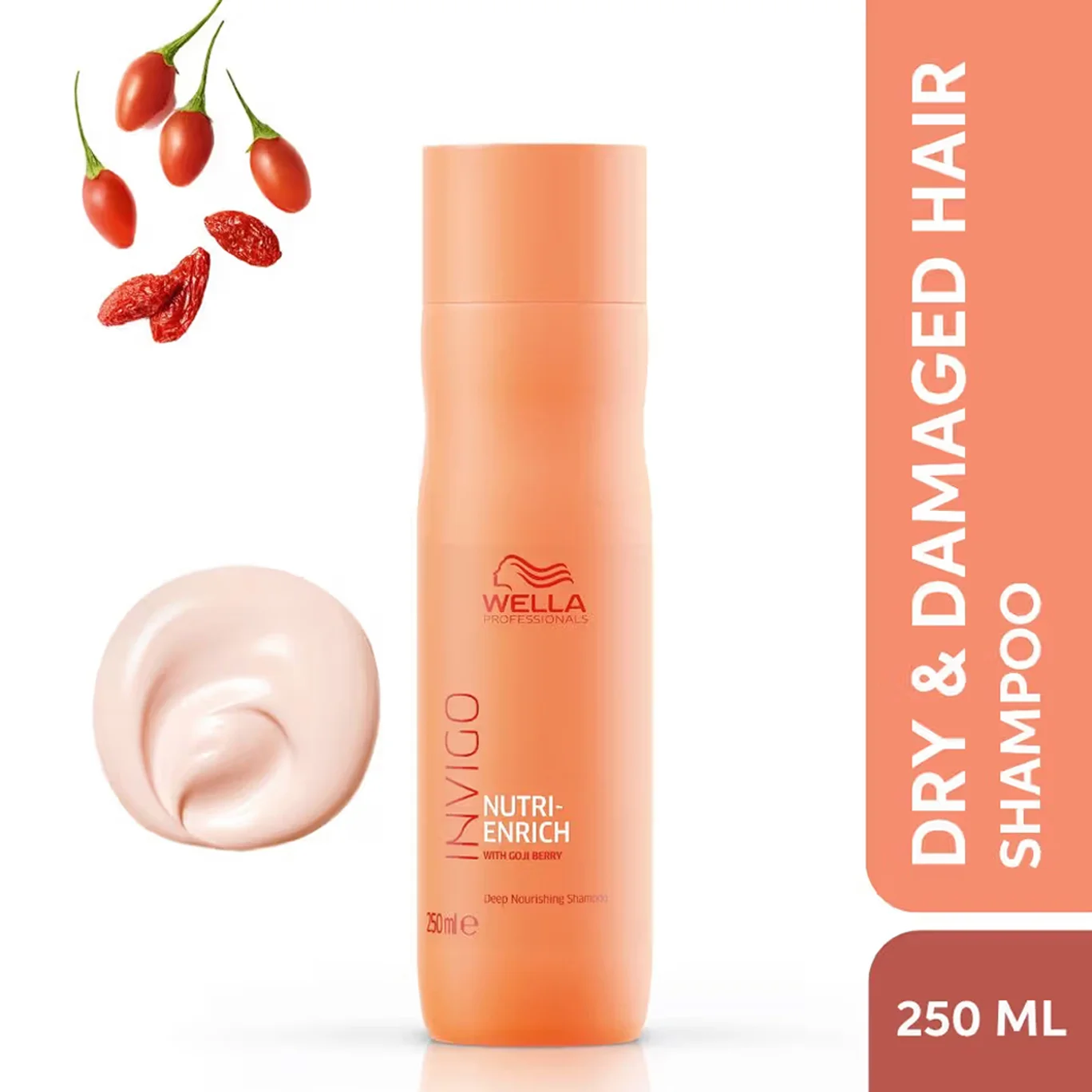 Wella Professionals Invigo Nutri-Enrich Deep Nourishing Shampoo, is a moisturising hair shampoo with NUTRI-ENRICH-Blend. Enriched with goji berry known to be extremely rich in vitamins, minerals and peptides, it deeply replenishes and moisturises dry and stressed hair. Formulated with vitamin E to protect the hair from further damage, optimum hydration is restored courtesy of panthenol and oleic acid contained in Wella’s unique Nutri-Enrich Complex. This shampoo offers instant, deep nourishment for; smoothness, manageability and movement.